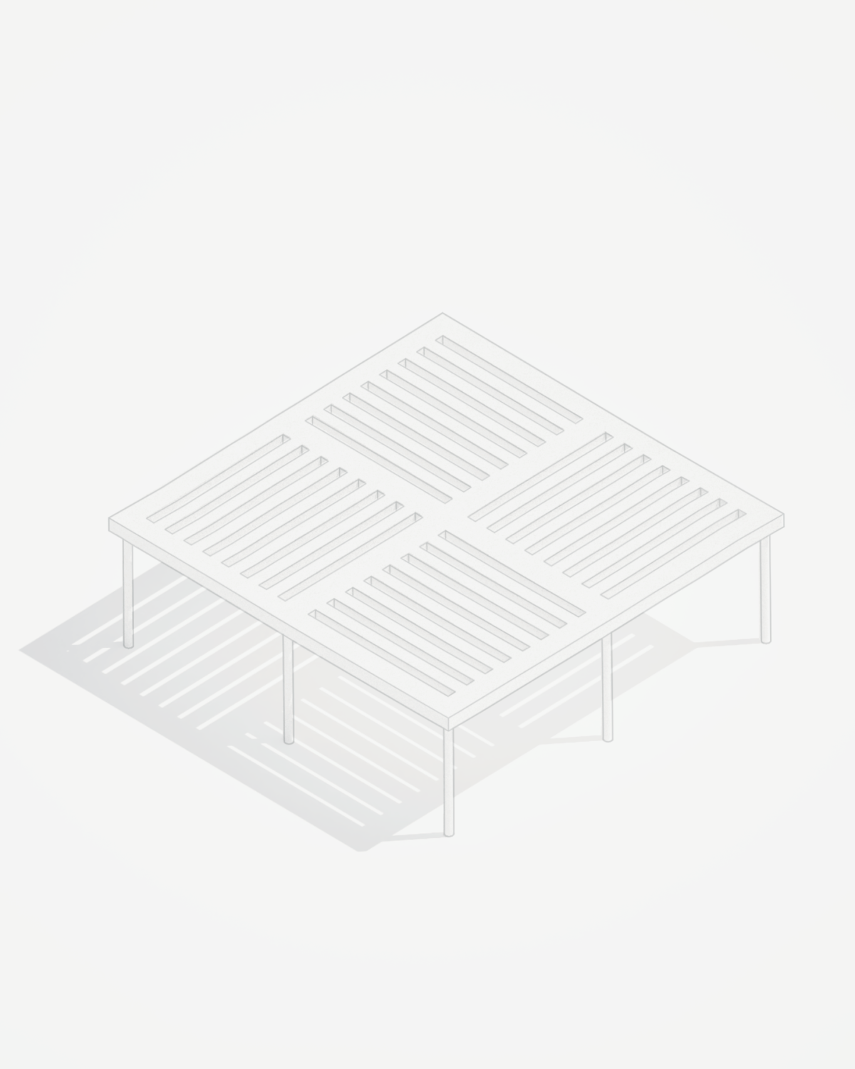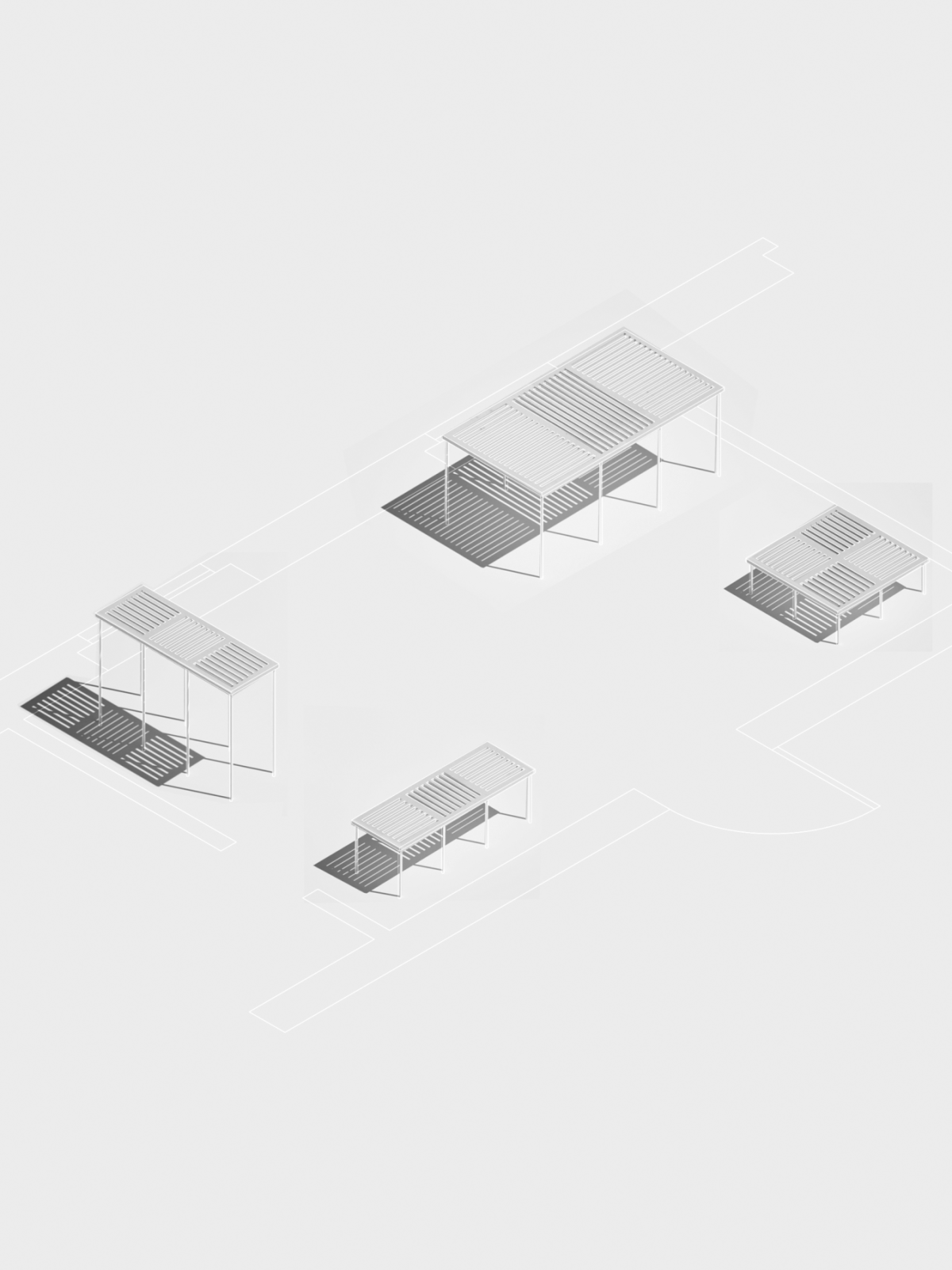 Situated between furniture and architecture, the pieces can be used or simply encountered. Each element functions as a fragment of a larger spatial system.