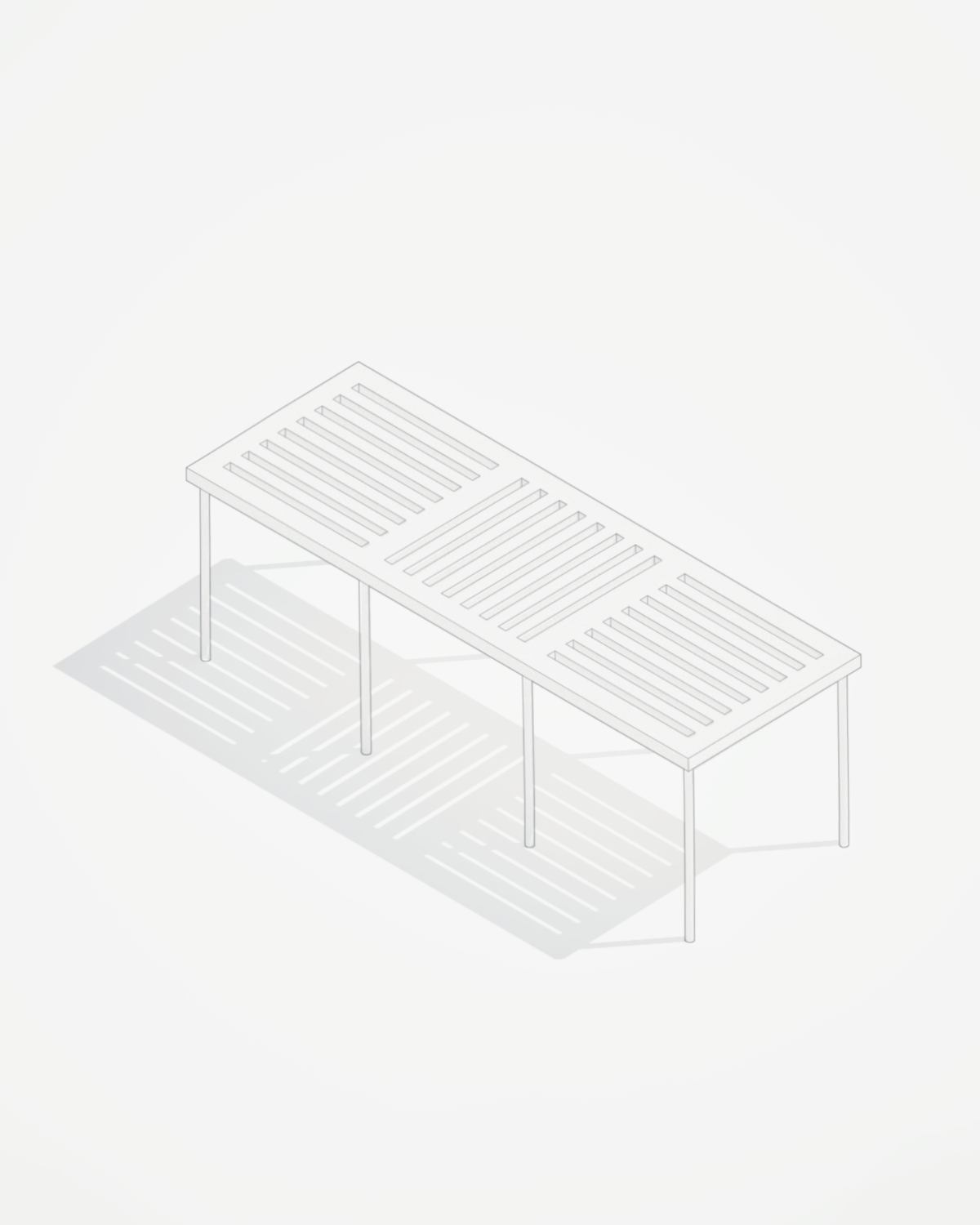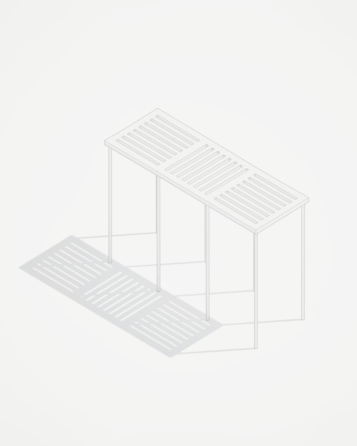 Carved from a fixed thickness of solid Thassos marble, selected for its density and luminosity, and paired with precise metal supports, the pieces are defined by permeability and perceived lightness.